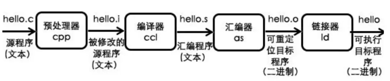 Q: 源程序转换为可执行文件的过程