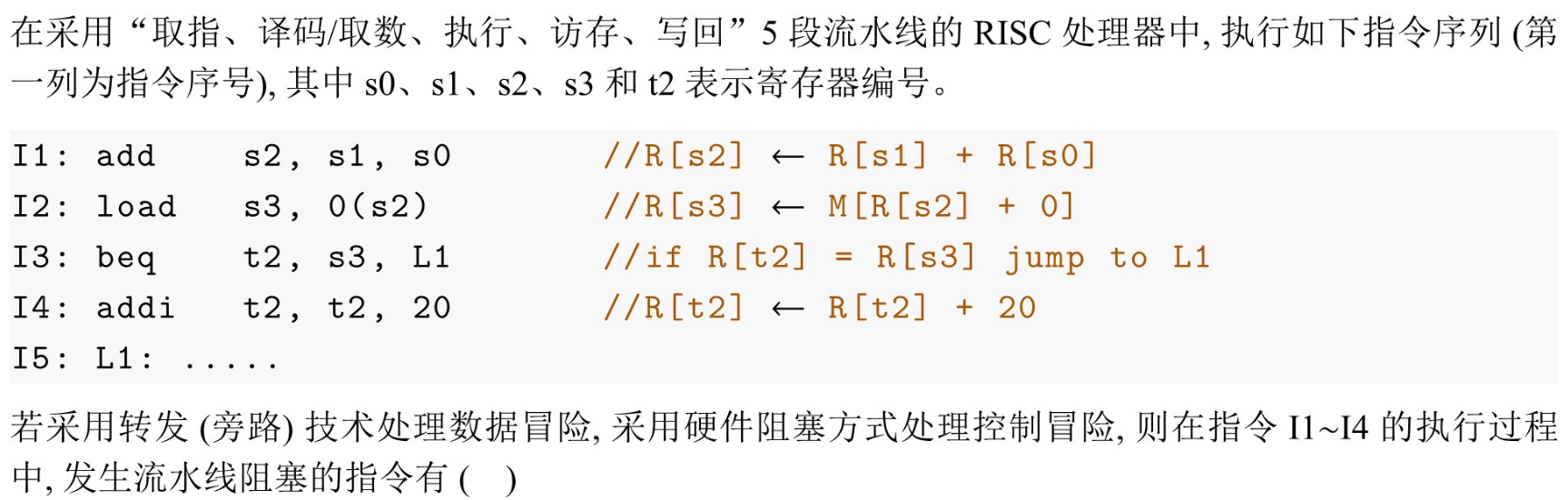 Q: 哪种数据冒险不能用转发旁路解决?