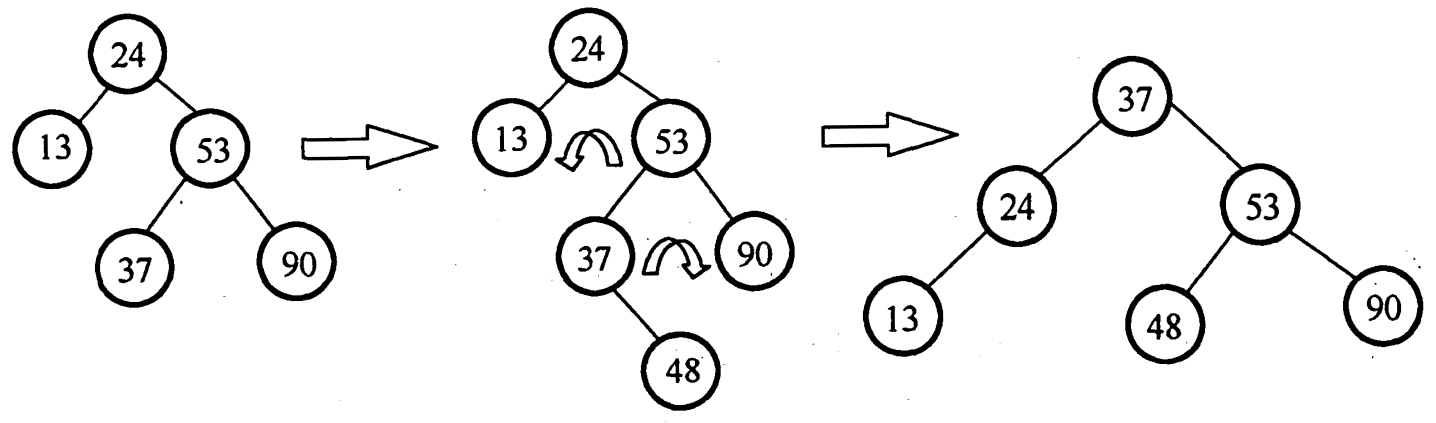 在该平衡二叉树中插入关键字48后得到的新平衡二叉树为
